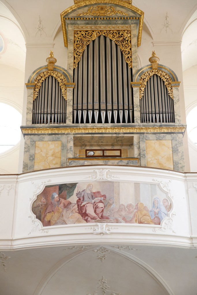 A wonderful place for a wedding, isn’t it? Now imagine it with the darkest sky, storm, heavy rainfall, thunder, and lightning! That was how the organist and I were welcomed when we arrived at 1:30 pm yesterday! We had to walk a bit from the parking lot to the church and we did some kind of island hopping between puddles and creeks. Although I wore a raincoat and had an umbrella I was totally wet when we finally arrived at the church. But there was nothing like warming up in there… I left my coat on and was still shaking. But it did not really matter anymore. We were there and the organ worked (at least most of it). The organist went through the pieces he had to play and then we checked the songs I was supposed to sing. The tourists below the gallery were our test audience and they seemed to like what they heard.