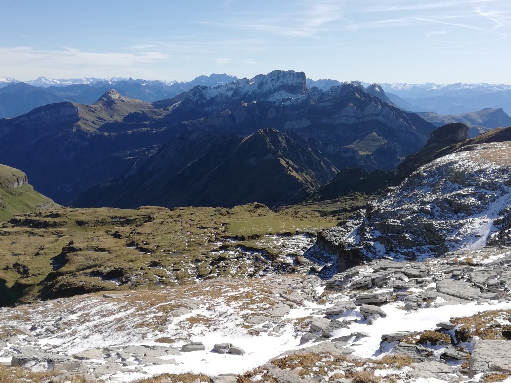 Today, I am sharing another part of the beautiful area I live in that is only a 20 minutes drive. Last October, we went up to the Chäserugg in Switzerland. It thought about the name because “Chäs” in Swiss German means cheese. When I did some researches on the internet, that interpretation was only one of the options. It could also come from the word “Kaiser” (Emporer). Nothing confirmed, though. However, it is a mountain with an altitude of 2262 m (7421 feet). To the intermediate station, we went by a cable railway. Then we had to change the vessel and continued with a big ropeway to reach the top station. Enjoy the view!
