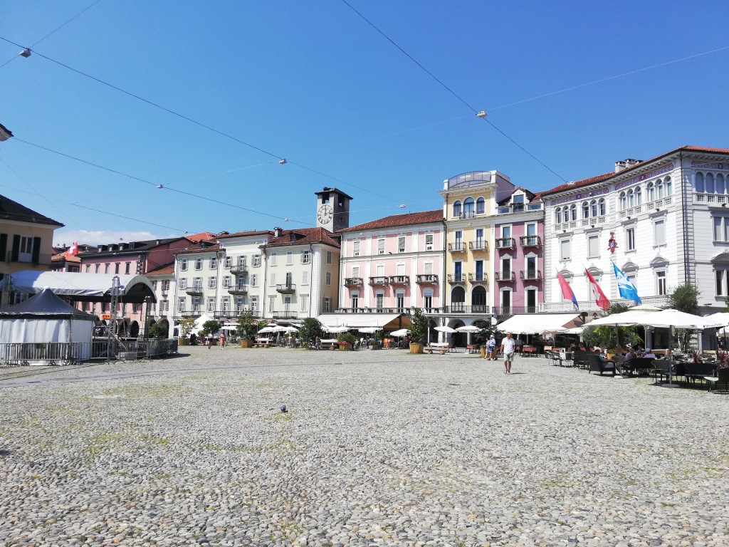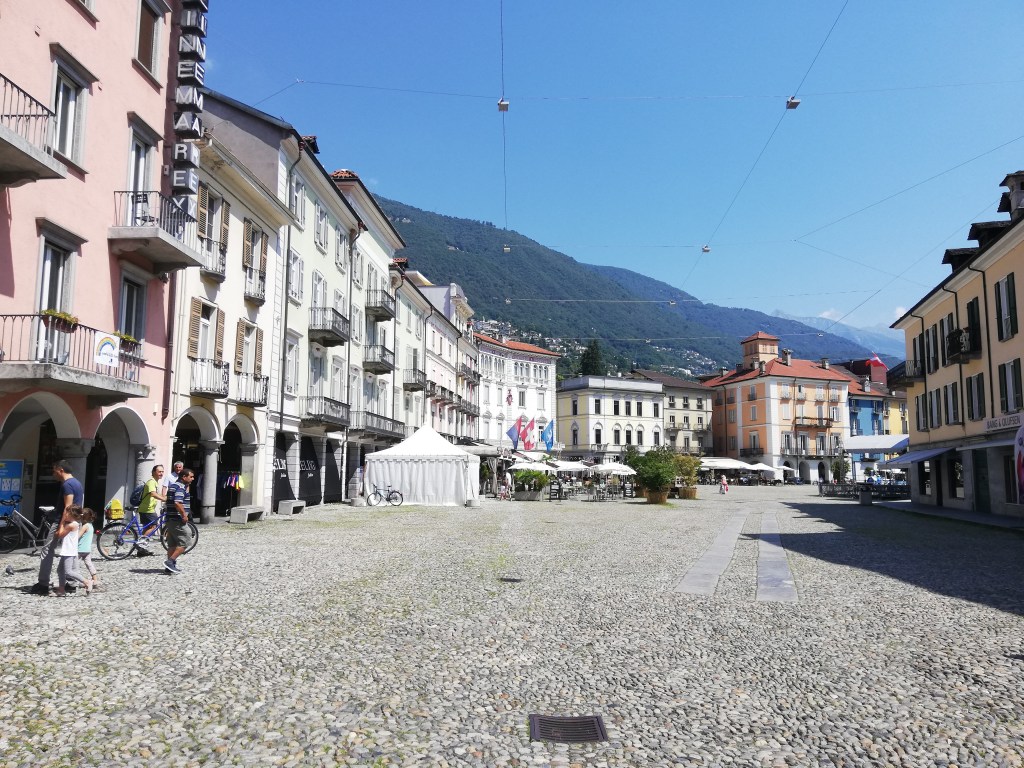 It was a hot day, and the weather was simply gorgeous. Temperatures between 90 and 100 are not unusual anymore in our area and even less in the southern parts of Switzerland. You can guess what comes next: A stop at a gelateria at the Piazza Grande and enjoyed some ice cream creation instead of lunch.