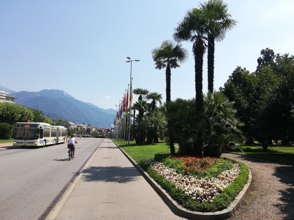 As you can tell from my absence, there is no dull moment in my life. But thank God, these days it is also because of our trips to beautiful places in the neighboring country, Switzerland. Last Tuesday we went to the city of Locarno at the beautiful Lago Maggiore. Locarno is a city in the canton of Ticino that is touching the Italian border. In that Swiss canton, people are speaking Italian. In Switzerland four languages are spoken: The biggest part of Switzerland speaks German, the western cantons speak French, the big southern canton Ticino speaks Italian, and there is a little minority in one a big eastern canton that speaks Rhaeto-Romanic. But let’s start the tour with some photos of the ride to Locarno.