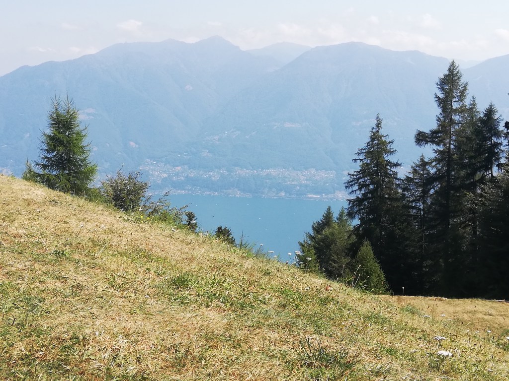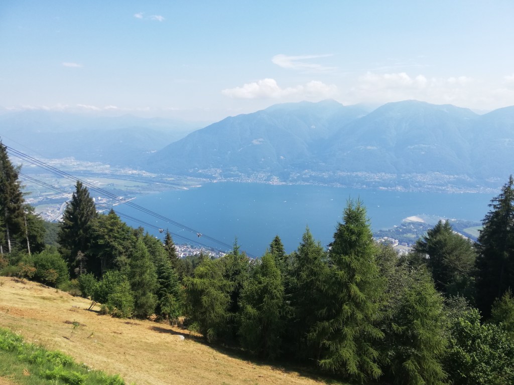 From that gorgeous church, we went to the ropeway that brought us up to Cardada at 1340 m/4396 ft. After looking down from over 4000 m last week, this was only a little “jump”, but the view from up there down to the lake was absolutely breathtaking again.