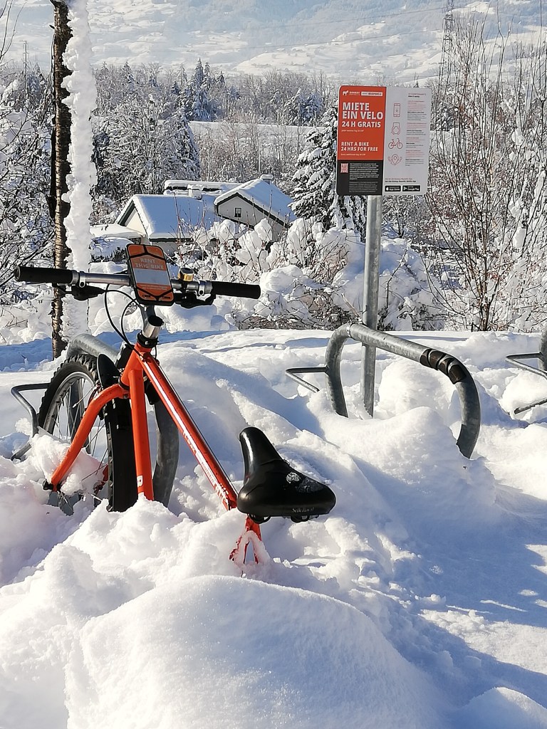 The sign says: Rent a bike – 24 hrs for free