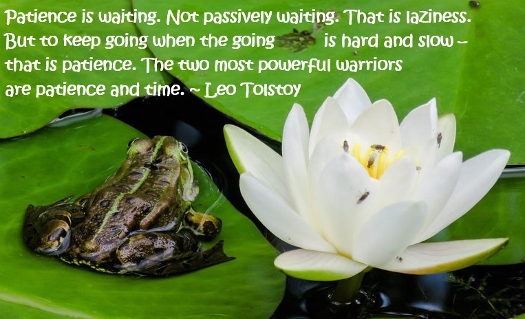 For today, I randomly picked a quote from the internet to get inspiration for something that may be important to share. It is interesting what quote my curser was resting on when I opened my eyes. Again, it is that patience thing.