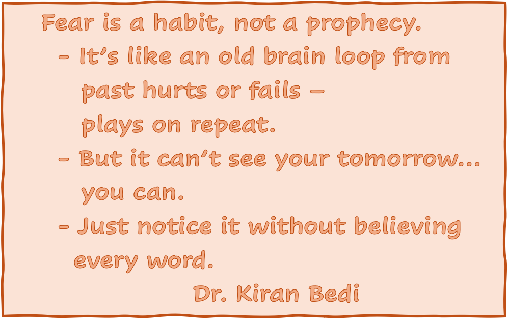 The “fog of fear” certainly applies to all aspects of our life but, I would suggest, is most prominent in our developing years. Beyond those years, it is more likely to be a specific circumstance which needs to be overcome, or a specific situation which needs to be avoided. “Fear of the unknown” is an interesting term here, because why would we fear what we don’t know? It all becomes supposition on our part that something bad will happen. Of course there may be circumstances which steer our analytical brains in that direction, but it makes so much more sense to explore/research/investigate the scenario in order to determine potential challenges. At best, our fear has no basis. At worst, we know exactly what the ramifications could be and can plan/prepare accordingly.
