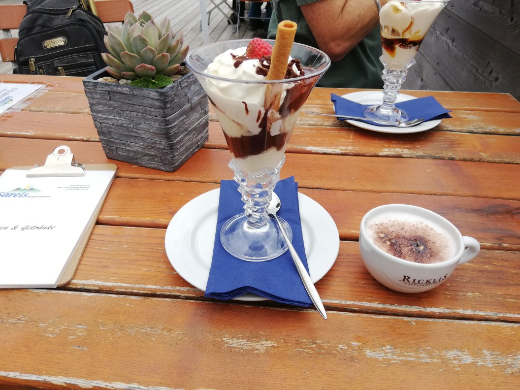 Arriving at the destination at 2000 m/3600 ft, we enjoyed a beautiful view of the mountains and mountain chains around there before I finally got to my ice cream and coffee 😋