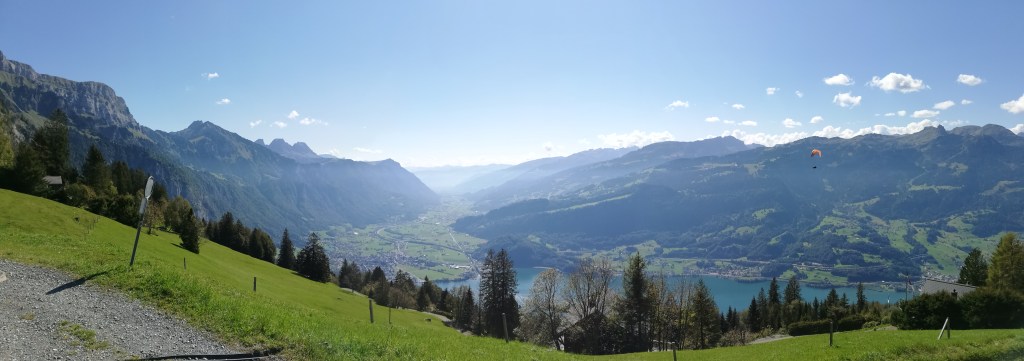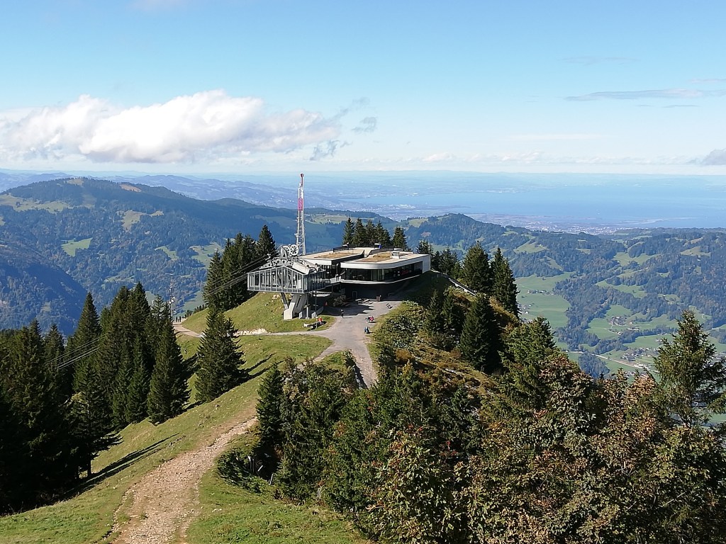 Today, I am sharing another part of the beautiful area I live in that is only a 20 minutes drive. Last October, we went up to the Chäserugg in Switzerland. It thought about the name because “Chäs” in Swiss German means cheese. When I did some researches on the internet, that interpretation was only one of the options. It could also come from the word “Kaiser” (Emporer). Nothing confirmed, though. However, it is a mountain with an altitude of 2262 m (7421 feet). To the intermediate station, we went by a cable railway. Then we had to change the vessel and continued with a big ropeway to reach the top station. Enjoy the view!